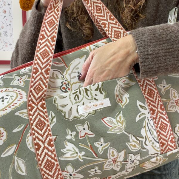 El tejido de la Bolsa de labores de punto (2025) es textil, esto es muy útil para que tus prendas siempre estén bien aisladas cuando que llevarlas fuera de casa. Además, todas las bolsas están forradas por dentro, con una tela diferente al estampado exterior. Además, cuenta con un bolsillo exterior para poder guardar todos nuestros accesorios, o incluso las diferentes agujas de punto que podamos tener.