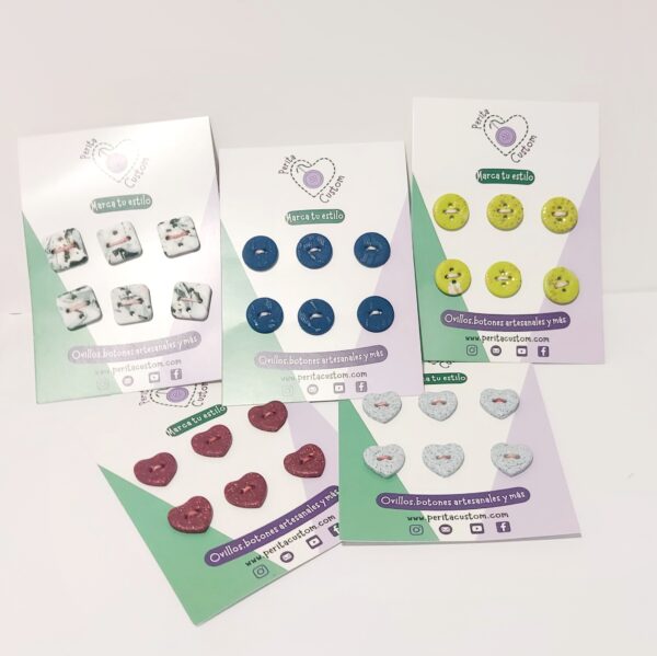 Disponemos de varios sets de Botones artesanales Perita Custom, compuestos por 6 botones de 20mm: