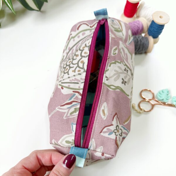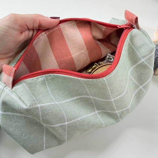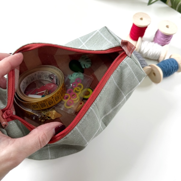 El estuche (2025) es ideal para guardar todos los tesoros que acompañan a nuestras labores. Tijera, aguja, hilo, marcadores, metro, cables guarda puntos, botones… ¡Todo cabe en este estuche!