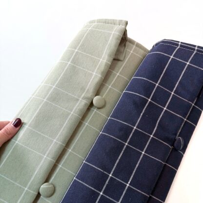 Las medidas del estuche guarda agujas de punto (2025) abierto son de aproximadamente 32 x 47 cm. Está pensado para plegarse en 3 veces y la medida plegado sería de aproximadamente 12 x 47 cm. Tienen una pequeña solapa superior para que, una vez plegado, no se salgan las agujas aunque gires el estuche guarda agujas. Para cerrarlo y dejar tus agujas bien guardadas, cuenta con unos botones que se abrochan con un pequeño elástico. Es una forma elegante y práctica de asegurar que no se salgan y dejarlo plegado para que ocupe menos espacio.