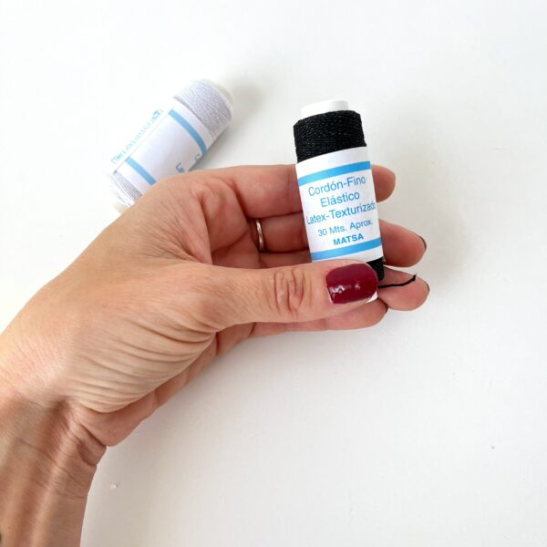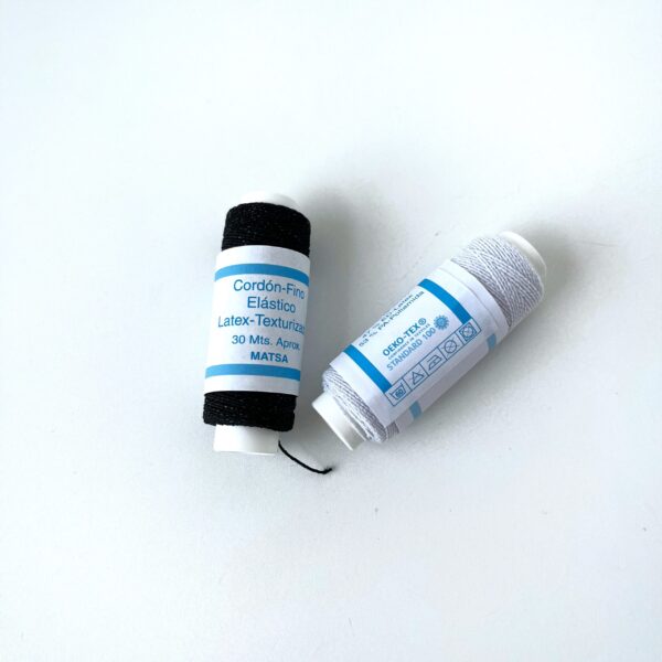 Disponible en dos colores, blanco y negro, estas bobinas de 30m están compuestas 47% de látex y una 53% poliamida, lo que hace que se un hilo de gran resistencia y elasticidad. Es un hilo o cordón fino elástico para coser a mano o a máquina. SI se cose con canilla, hay que tener en cuenta que hay que enrollar el hilo con cierta tirantez para que al coser la prenda, esta se llegue a fruncir.