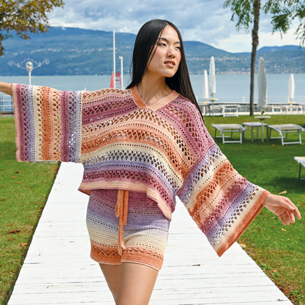 Ovillos de 70% algodón egipcio, 30% bambú en un acabado con mezcla de colores. Una mezcla de colores con unas combinaciones preciosas que quedan a franjas y le dan un toque de alegría a cualquier prenda que tejas.